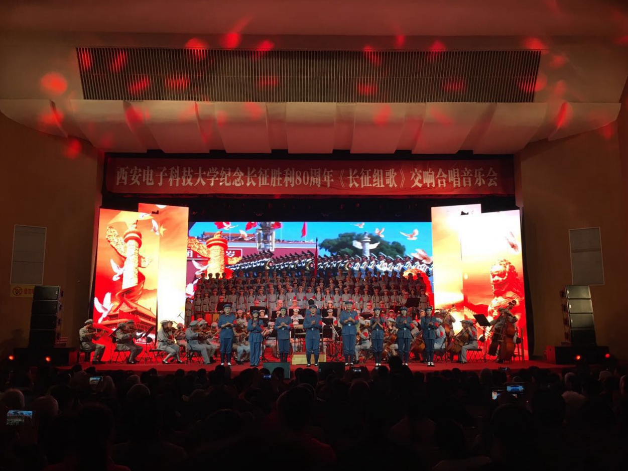 << 11月10日晚,纪念长征胜利80周年暨bat365在线中国登录入口建校85周年校庆月系列活动——《长征组歌》大型交响合唱音乐会在西电北校区大礼堂激情上演