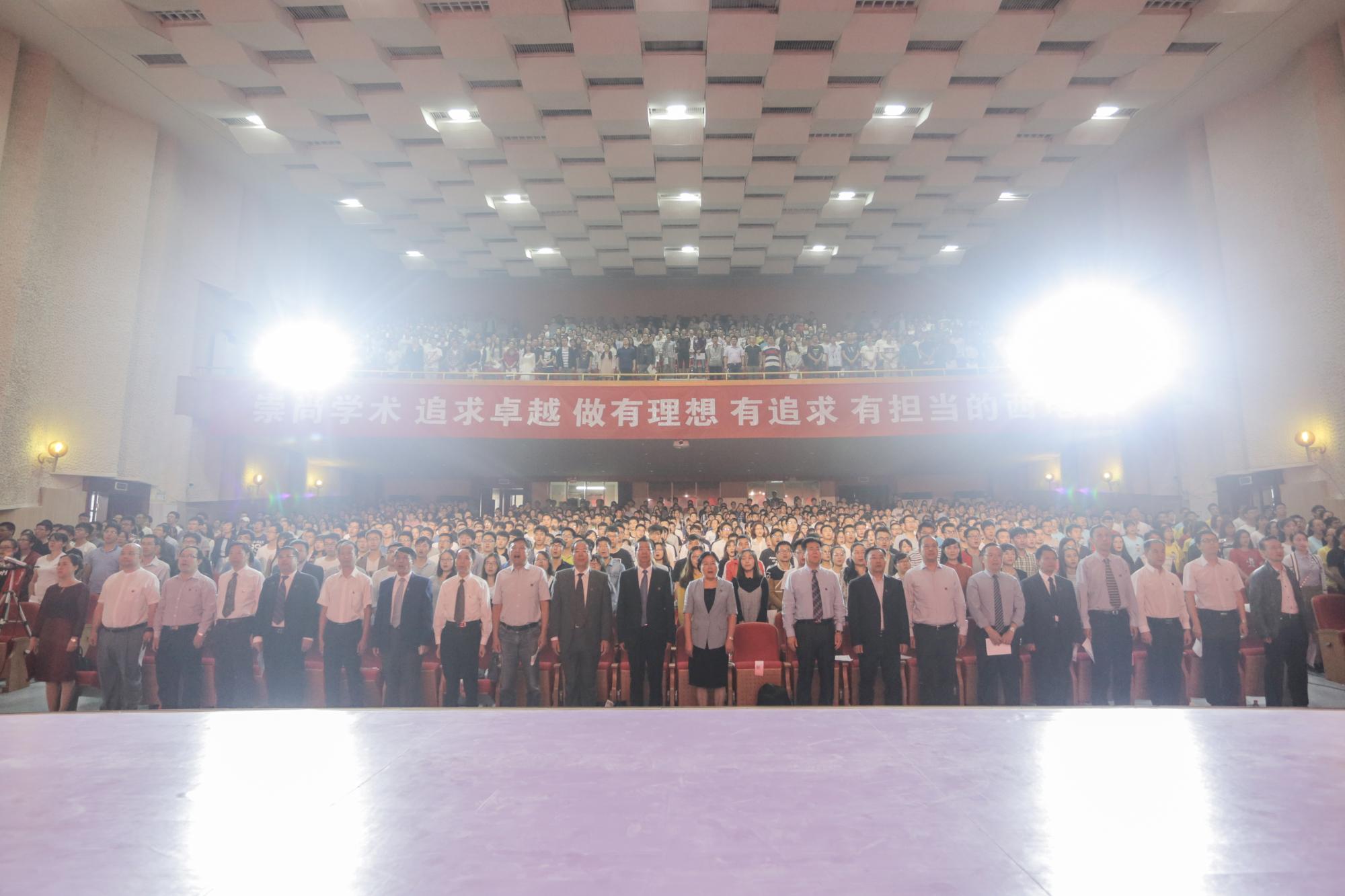 全场合唱校歌《与共和国同行》,激扬的旋律奏响新西电人“团结勤奋、求实创新、厚德求真、砺学笃行”的研途篇章。