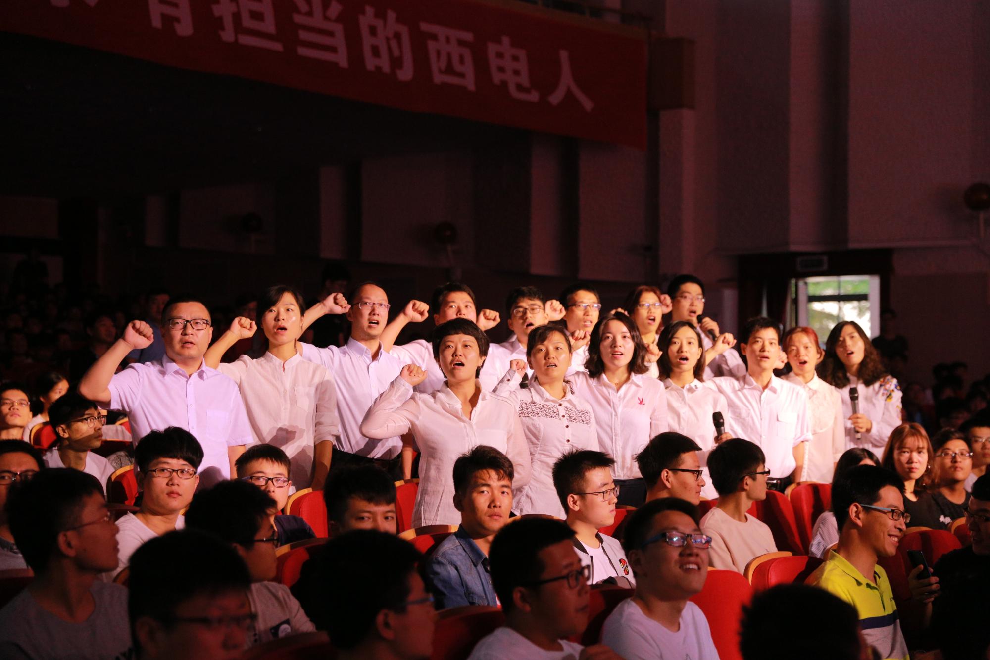 全体新生庄严宣誓:“诚实守信,求真务实;严于律己,刻苦钻研;勇于探索,锐意进取;崇尚学术,追求卓越;做有理想、有追求、有担当的西电人”。