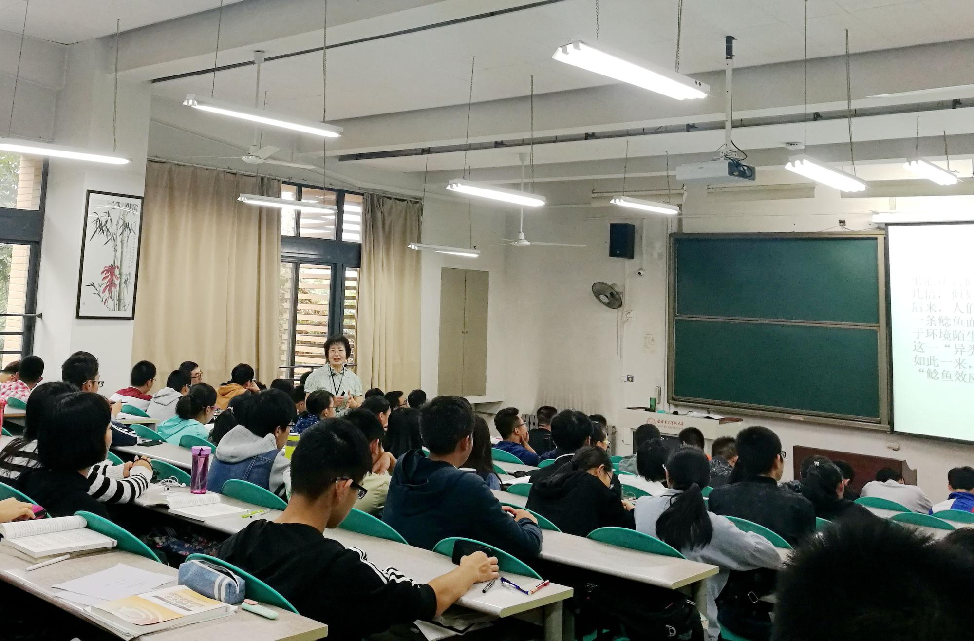 “上课!”“起立!”“同学们好!”“老师好!”延续中学课堂的课前问好仪式,一扫节前阴天里晨间课堂的倦意,唤醒一双双求知的眼睛。问好声落,上课铃响起。