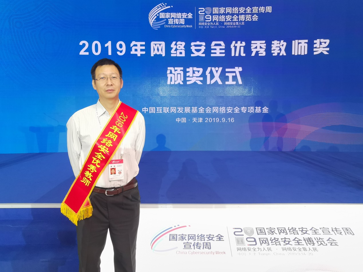 2019年9月16日,由中央宣传部、中央网信办等部门联合举办的2019年国家网络安全宣传周在天津开幕。开幕式上公布了2019年度10位网络安全优秀教师奖获奖名单,bat365在线中国登录入口网络与信息安全学院李兴华教授荣获2019年“网络安全优秀教师奖”。