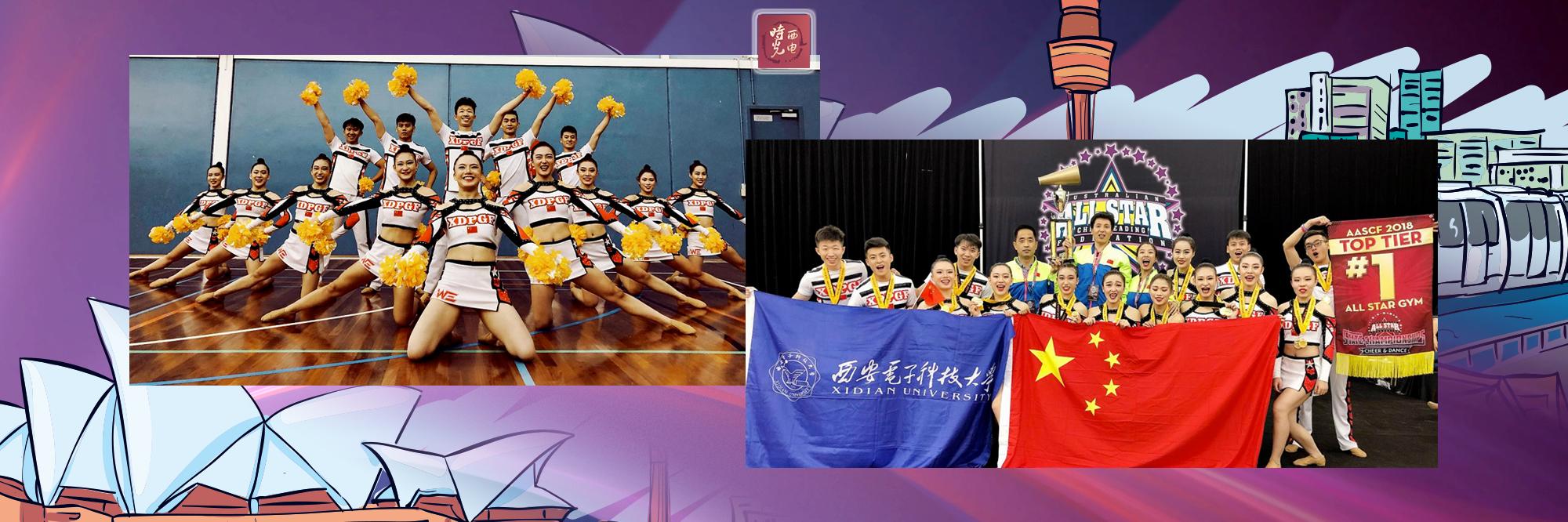 鉴于西电啦啦操队在国内系列赛事的出色表现及获得的佳绩,2018年9月21日至25日,受中国啦啦操委员会的委派,西电PGF啦啦操队代表中国参加了在澳大利亚墨尔本举行的全明星赛。