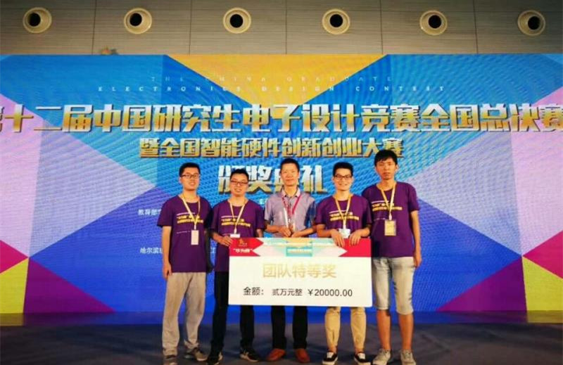 2017年8月22日,在广东惠州举行的第十二届中国研究生电子设计竞赛全国总决赛TOP 10竞演的舞台上,bat365在线中国登录入口“嵌牛护理”团队负责人向来自全国130所高校的参赛代表、专家评委及指导教师介绍了他们的创新作品——欢孝护理床。凭借作品良好的展示效果和应用价值,由千博、杨刚老师指导的“嵌牛护理”团队在众多参赛团队中脱颖而出,夺得全国特等奖。