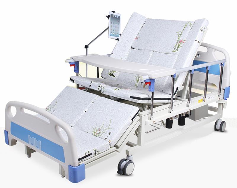 “欢孝护理床”是一款集自助如厕、自助活动、语音控制、远程操作、聊天互动等多功能为一体的智能护理系统,这套智能护理系统大体上是由护理床,用户终端,亲属终端三部分组成。护理床是基础的服务,主要是提供给用户自助如厕、自助活动等服务;用户终端是控制护理床自助活动,自助如厕,与亲友互动;亲属终端是供用户亲属使用,远程控制护理床,查看老人的状况,与老人进行视频聊天等等。在欢笑护理床上,卧床老人不仅可以通过语音或触屏自助进行翻身、坐起、抬腿、落腿和自动排便护理等活动,还可以通过用户终端与子女聊天互动,借助平板上的新闻了解外面的世界,丰富卧床老人的精神世界,增加其社会参与感,从而使卧床老人真正的安享晚年。家属可以通过家属终端随时查看老人状态并且可以远程控制护理床,大大减轻了家人的护理负担。