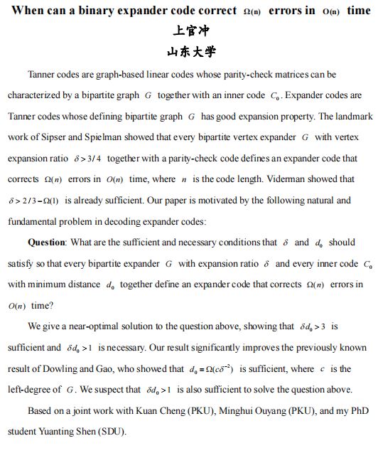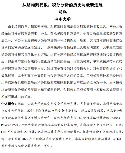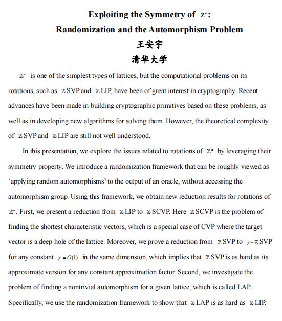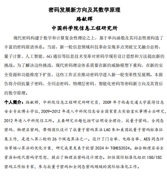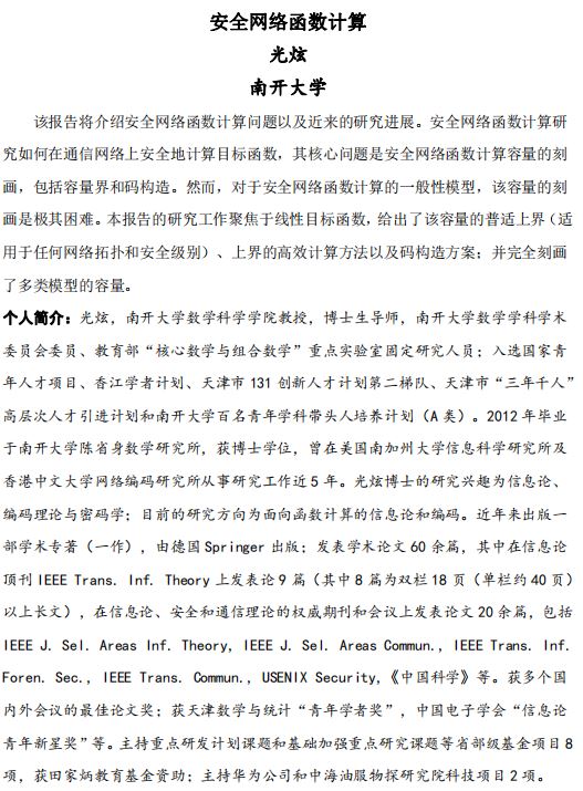 讲座名称:第二届信息通信及安全数学理论年会