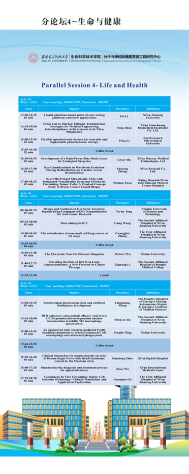 主办单位:bat365在线中国登录入口生命科学技术学院、分子与神经影像教育部工程研究中心、陕西省高等学校学科创新医学信息感知与智能诊疗引智基地、西安智能精准诊疗国际科技合作基地