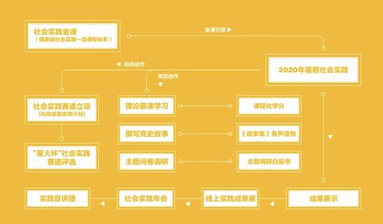 在疫情防控的要求下,创新实践方法,采用“规定动作”与“自选动作”相结合的实践方式,依托社会实践金课,开设线上理论学习,指导专项主题调研,鼓励实践赛道立项,最终实现成果高效转化。