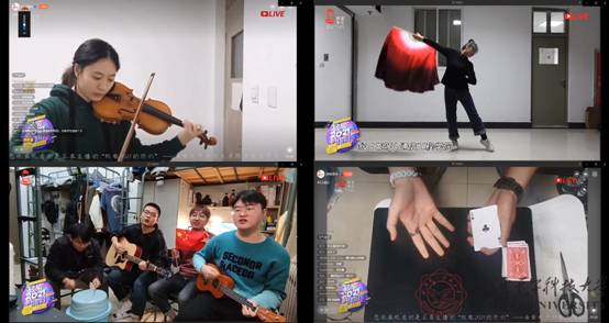 各学(书)院坚持引导学生过好健康充实的每一天,为疫情防控做出贡献。全校学生以宿舍为单位,合理安排封闭管理期间的学习、生活。坚持好健康生活作息,利用好线上平台资源,发挥好朋辈带动作用,提升好个人素质能力,以积极向上的心态和充足细致的准备迎接好即将到来的每一个机会与挑战。晚会中,学生通过舞蹈、器乐、合唱、魔术等形式,讲述着共抗疫情、共克时艰的精神状态,传递西电青年的青春正能量。
