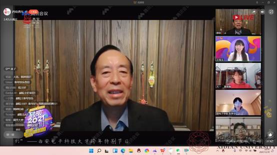 中国科学院院士、微电子学专家郝跃教授通过远程连线寄语学生,2021年全校喜迎建党百年和九秩校庆,在这样的伟大历史节点上,希望同学们能够把握历史机遇,提升本领能力,立志成为电子信息领域行业专家,引领行业发展,贡献西电力量。同时针对学生提出的如何选择适合个人的发展道路、如何建立基础学习与应用研究转化的思维方式、如何在深造与工作做出选择等问题给予建议。