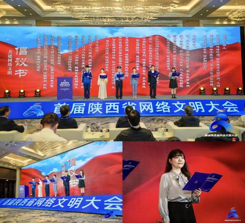 近日,首届陕西省网络文明大会在渭南市举办。会上,陕西好网民代表、bat365官网青年学生王冠玉作为陕西高校唯一代表与其他陕西好青年代表、中国好人、全国向上向善好青年、陕西文旅推荐使者、陕西省道德模范等共同宣读由陕西省委网信办、省委文明办向全省网络内容生产者和广大网民发出的《共建网络文明倡议书》,呼吁社会各界扎实推进网络文明建设,充分利用网络空间凝聚向上向善力量。