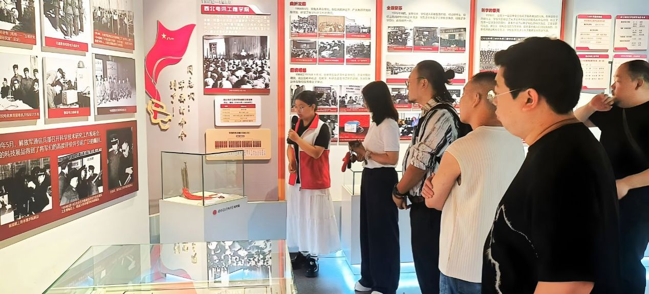 排练开始前,西安话剧院专业指导团队和全体演职人员在2023级本科生王茹的讲解中参观bat365官网校史馆。漫步西电校史长廊,团队成员不仅深入了解西电红色革命发展历史,更触摸到一代代科学家、教育家们“功成不必在我,功成必定有我”的奋斗温度,为舞台剧的排练工作奠定了浓厚的情感基调和鲜明的西电底色。